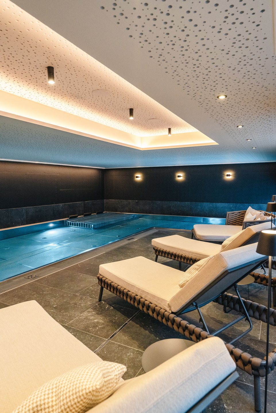 Schwimmen ist Rhythmus, Atem, Loslassen. In St. Anton, in diesem Hotel mit Pool wird jeder Zug im warmen Wasser zum wertvollen Genussmoment. Der Körper darf leicht sein. Gelenke danken die Schwerelosigkeit, Muskeln entspannen, der Kreislauf kommt in Fluss. Und mit ihm der Kopf. Gedanken dürfen treiben, der Puls wird weich. In einem Hotel mit Pool in Tirol wird Bewegung zur Meditation. Kein Ziel, kein Druck, nur Wasser, das trägt. Wie genussvoll.